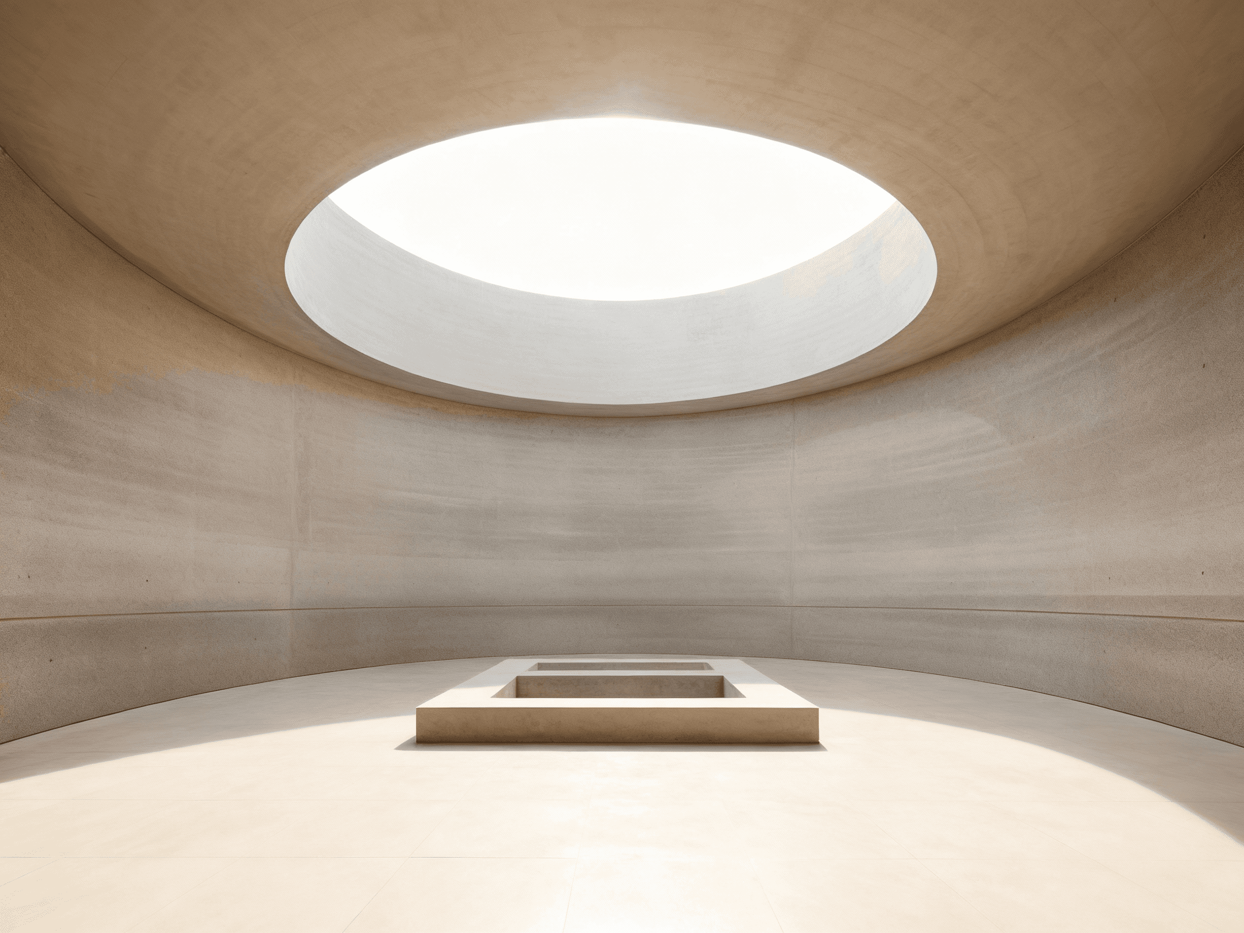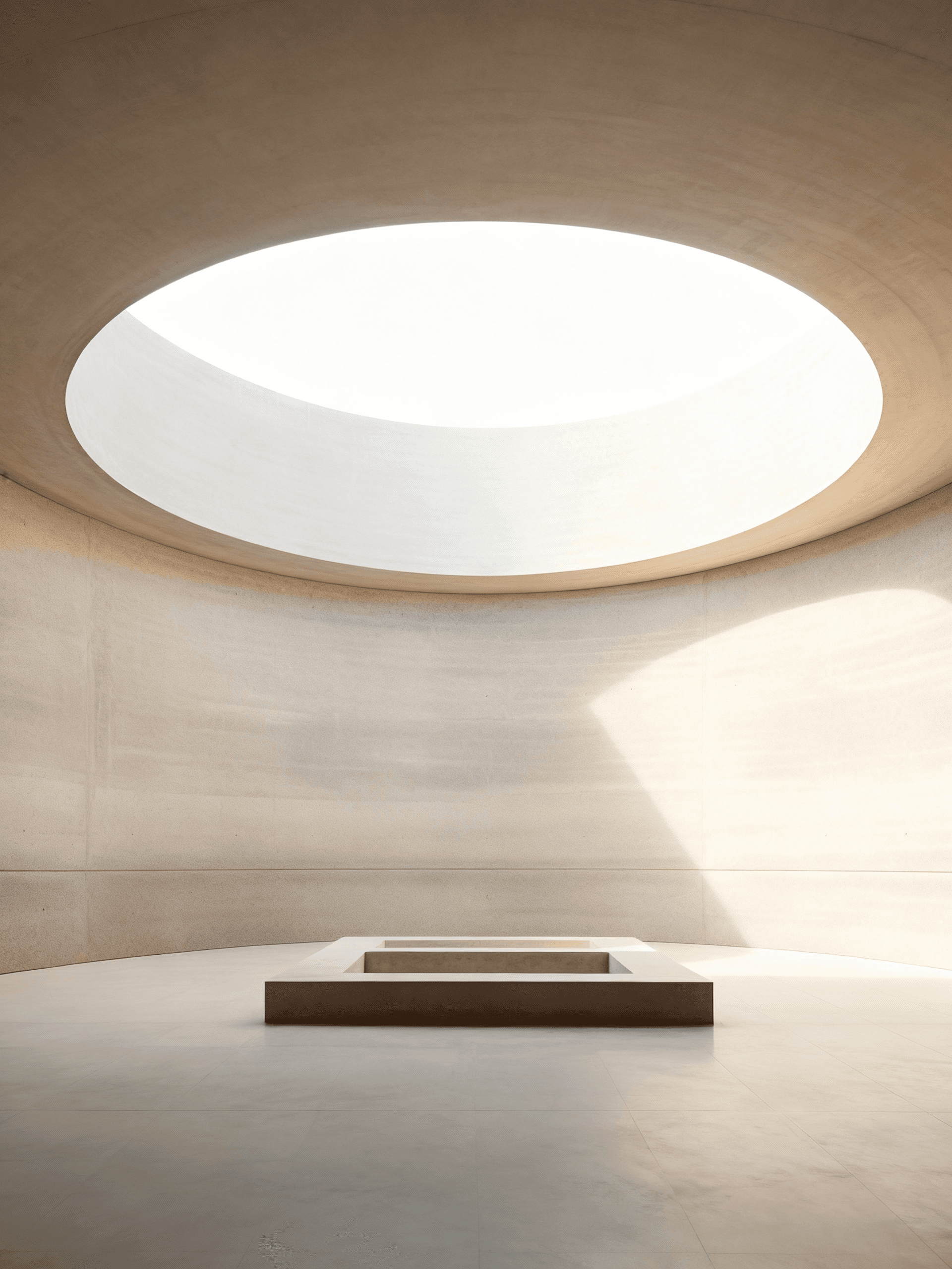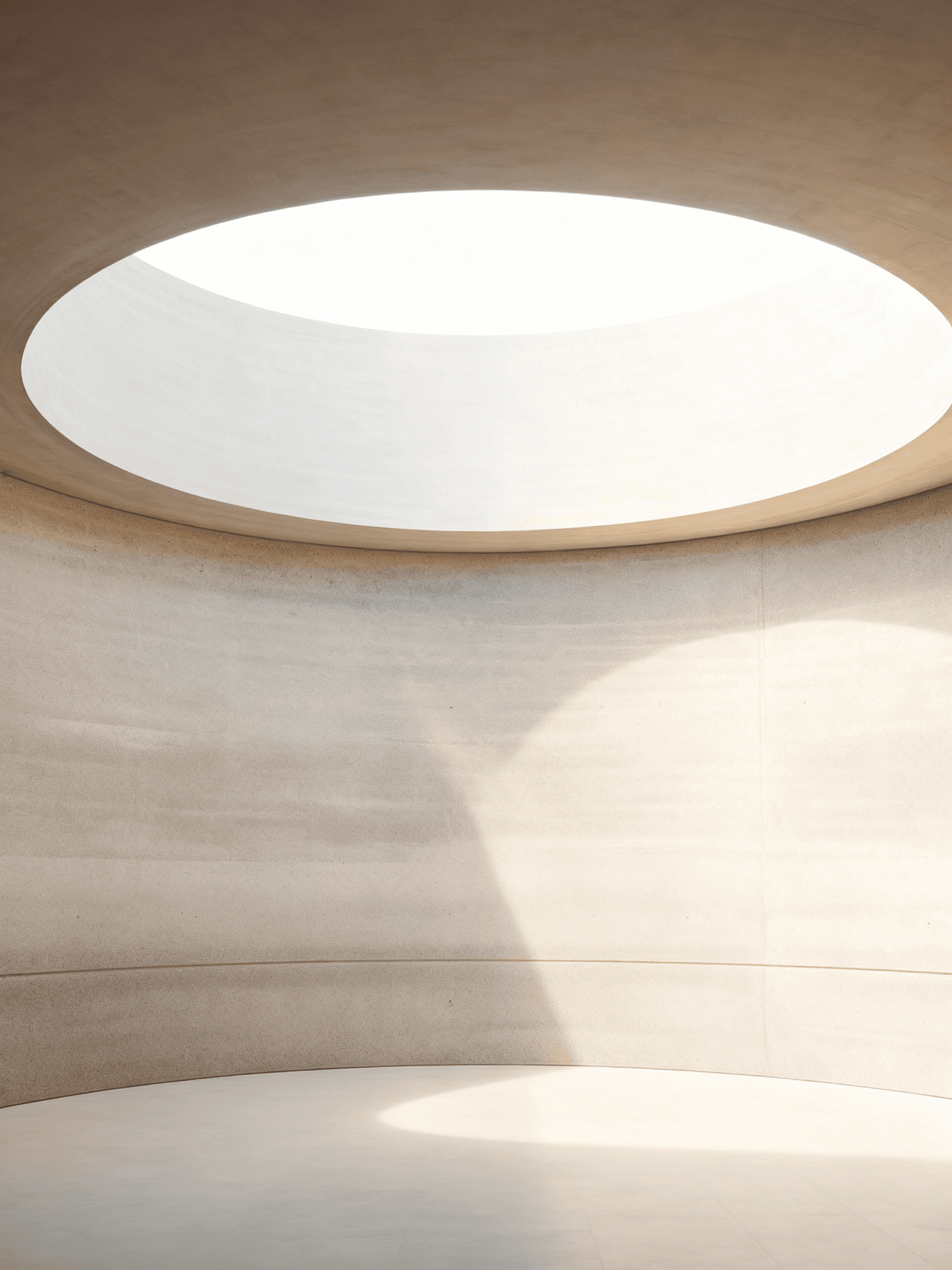 A concept project conceived as a controlled architectural environment defined by geometry, enclosure, and daylight. The space is organised around a circular roof opening that operates as the primary spatial device, drawing natural light into an otherwise enclosed volume and establishing a clear centre and orientation. This opening allows light to articulate the passage of time while revealing the curvature and materiality of the surrounding surfaces. The interior is defined by continuous, restrained materials and a limited palette, enabling form, proportion, and light to remain the dominant elements. The project prioritises clarity, stillness, and material honesty, treating light as a structural component rather than an applied effect. The result is a quiet, focused interior in which spatial experience is shaped by the relationship between void, light, and enclosure.